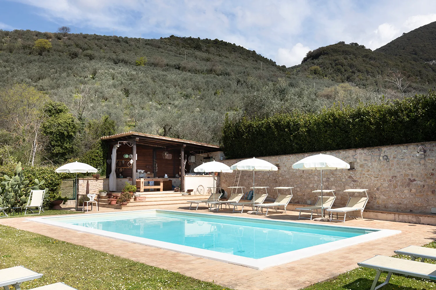 Nel nostro agriturismo c’è una bellissima piscina con vista sulle montagne, dove è possibile rilassarsi e fare il bagno nelle afose giornate estive e godere di un panorama naturale piacevolissimo.